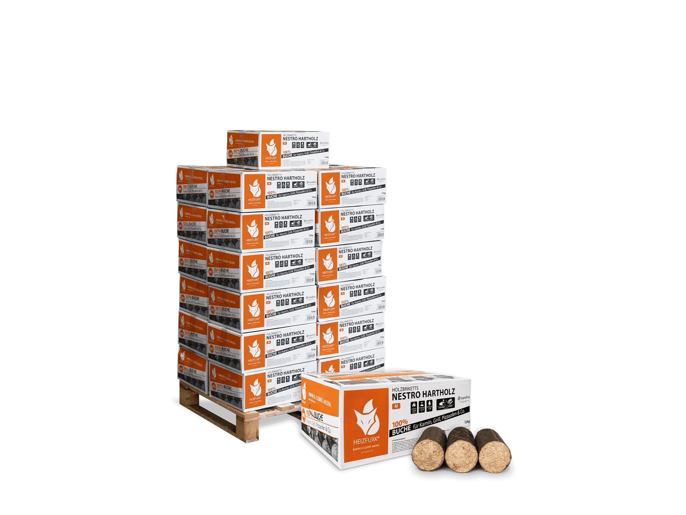 Heizfuxx Holzbriketts Nestro Hartholz m 12kg x 25 Karton 300kg Palette