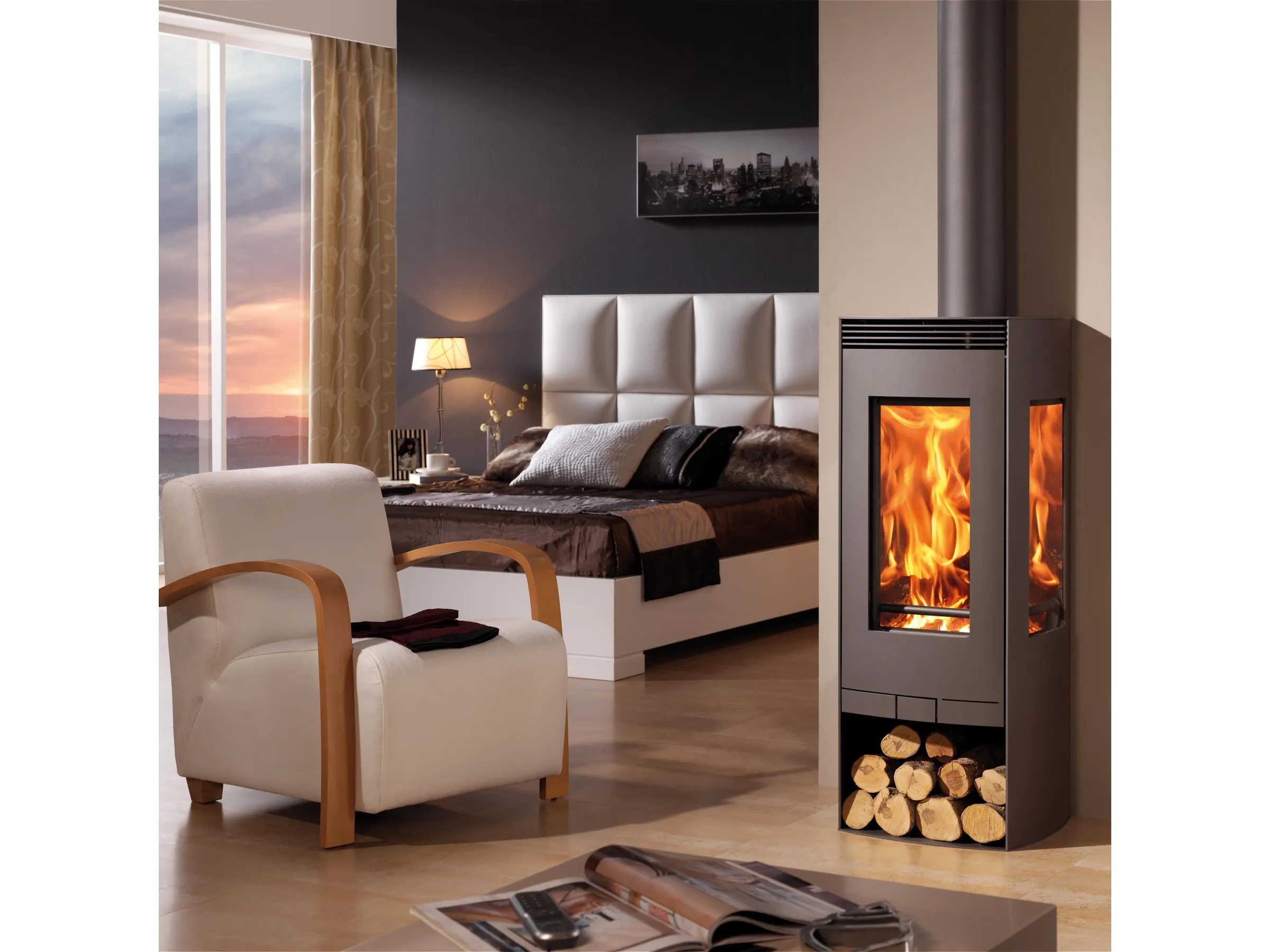 Kaminofen Kaminofen LOIRE EcoDesign drei der Marke Panadero beeindruckt durch sein gradliniges, modernes Design und fügt sich wunderbar in alle Wohnstile ein. Mit einer maximalen Heizleistung von 5,9 kW sorgt er für eine warme und gemütliche Atmosphäre in der kalten Jahreszeit und beheizt Räume bis 210 m³ mühelos.